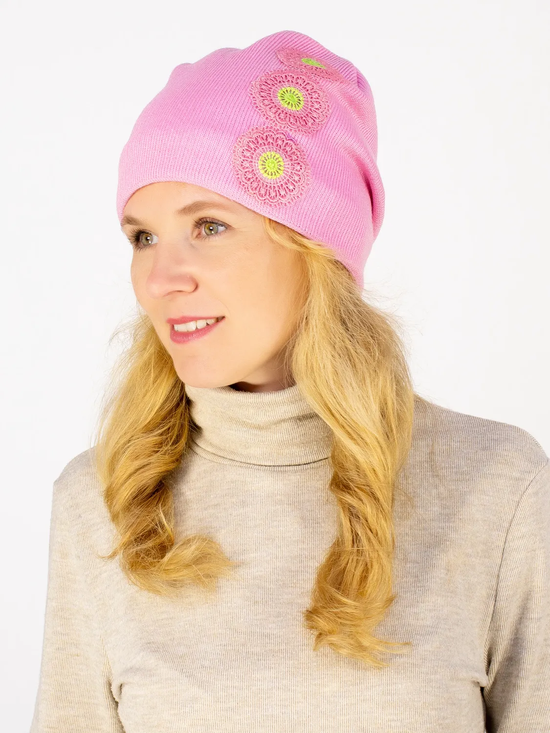 Шапка женская весна-осень Кружева (Цвет розовый). Подклад: Хлопок, Температурный режим: До -5°С, Акрил: 100%, Производитель: Россия-Омск